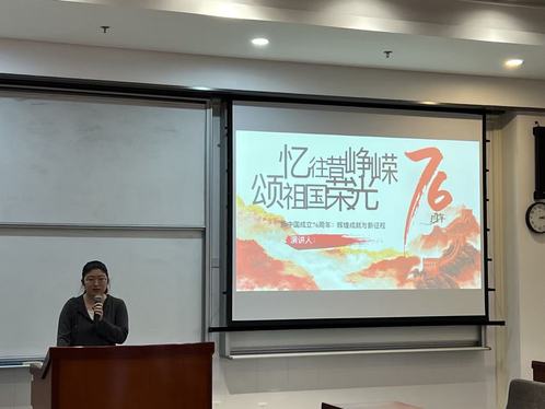金秋送爽,红旗漫卷。为热烈庆祝中华人民共和国成立76周年,2024级全日制MBA第二党支部在中国科学技术大学国际金融学院2号楼201教室举办了一场主题鲜明、内容丰富的主题党日活动。支部全体党员及入党积极分子齐聚一堂,在回顾历史中坚定信仰,在礼赞时代中激发豪情,更在四位同学的精彩分享中凝聚起“青春向党、报国为民”的磅礴力量。