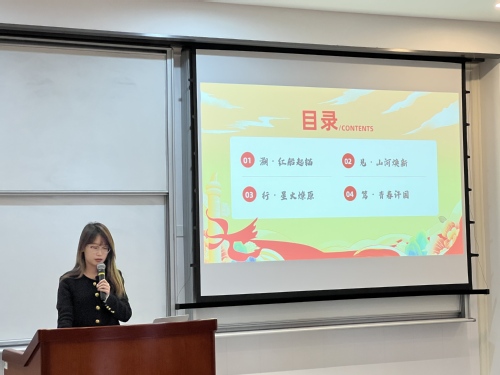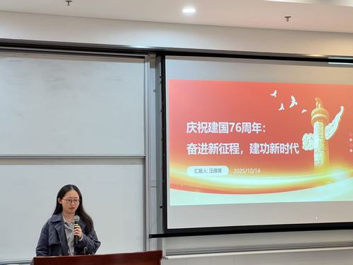 汪梅芳同学回顾了新中国成立以来从一穷二白到GDP突破120万亿元、科技从“两弹一星”到“神舟二十号”的巨大跨越。她提到,支部通过组织党员重温入党誓词、学习政策、开展志愿服务,将专业所学与爱国实践紧密结合,彰显了青年学子助力国家发展的责任与行动。