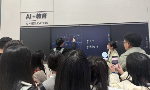 在“AI+教育”展区,科技与教学实现了生动融合:勾股定理在智能交互屏上立体呈现,抽象函数图像实时动态演化,晦涩知识变得直观可感。讲解员现场演示的智能评卷系统,其对学生答题逻辑的精准识别能力,令在场同学赞叹不已。这一刻,教育已不再是单向灌输,而是人机协同、双向启迪的互动过程。指尖轻触屏幕的瞬间,触动的不仅是知识,更是教育数字化浪潮下的未来图景。