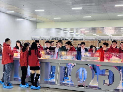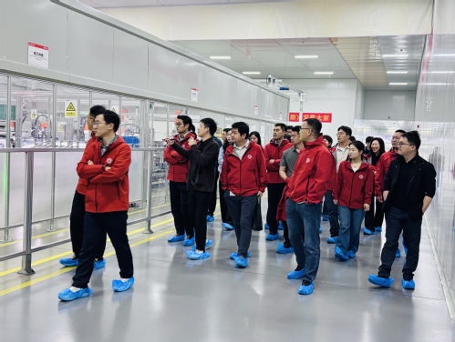 活动伊始,同学们在行政部王秀红引导下于西1门至二期大厅集体合影,随后进入产线参观环节。在电芯工艺部总经理刘铭的带领下,大家依次走过二期参观通道、电芯产线、展台区、三期通道及党建墙,实地观摩了动力电池从电芯到成品的智能化生产流程。